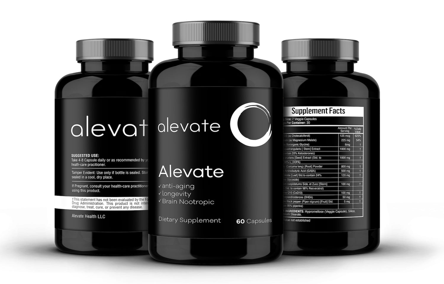 Shop nowIntroducing Alevate, the all-in-one supplement designed to alevate your performance. Our unique formula is expertly crafted to support anti-aging, joint health, brain function, muscle performance, natural hormone optimization and mood, making it the perfect supplement for anyone looking to optimize their overall well-being. Alevate is the solution for those who strive for more and want to achieve their full potential. Try Alevate today and experience the difference for yourself."